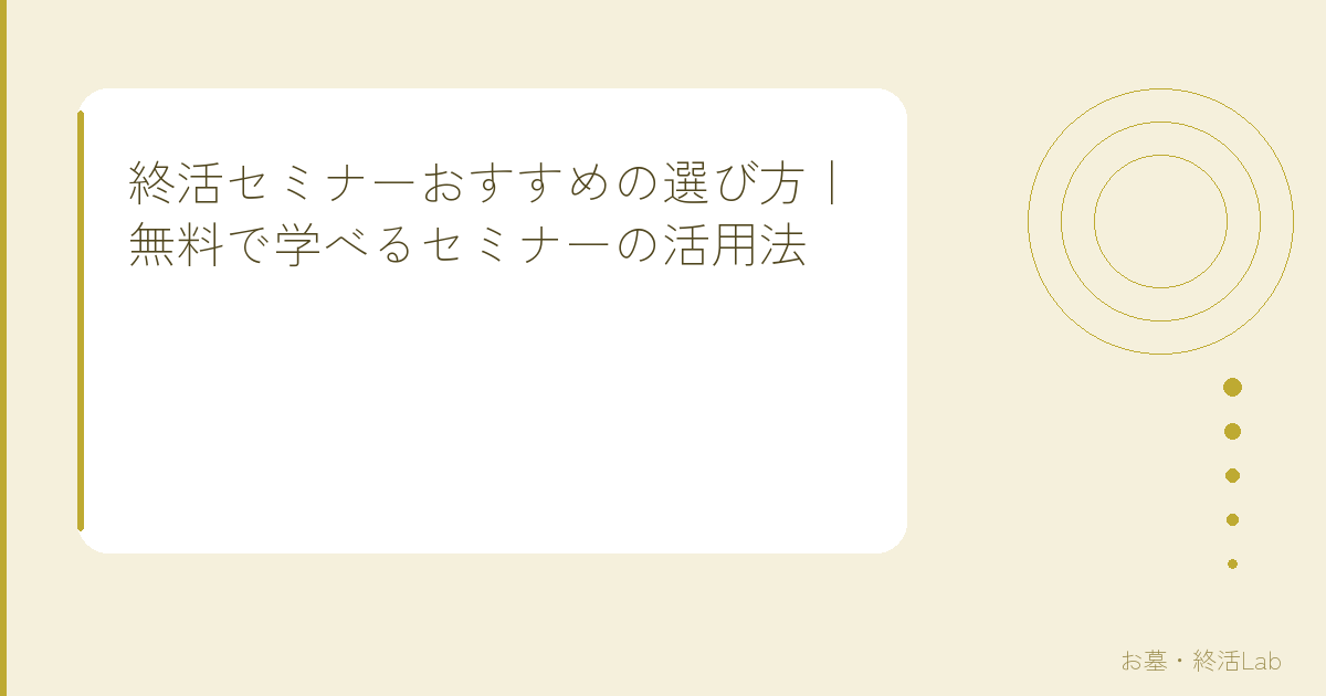 葬儀社や霊園が主催するセミナーは、葬儀やお墓に特化した実践的な内容が特徴。無料で参加できるけど、最後に自社サービスの案内がある場合も。「セールスされるかも」と身構えるかもしれないけど、断ればいいだけだから気軽に参加してOK。